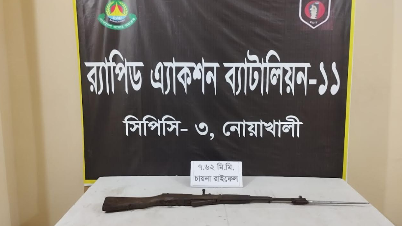 জানা যায়, গত ৫ আগস্ট শেখ হাসিনা সরকারের পতনের পর সন্ধ্যায় উত্তেজিত জনতা নোয়াখালী জেলার বিভিন্ন থানায় আক্রমণ, ভাংচুরসহ অগ্নিসংযোগ ও লুটপাটের ঘটনা ঘটে। লুটপাটের এক পর্যায়ে দুর্বৃত্তরা থানা থেকে বিপুল পরিমাণ অস্ত্র ও গোলাবারুদসহ বিভিন্ন সরকারি সম্পত্তি লুট করে নিয়ে যায়। পরবর্তী সময়ে র্যাব-১১, সিপিসি-৩, নোয়াখালীর একটি গোয়েন্দা দল থানা থেকে লুট হওয়া মালামাল উদ্ধারের জন্য নোয়াখালী ও লক্ষ্মীপুর জেলার বিভিন্ন থানা এলাকায় অভিযান পরিচালনা করে। এরই ধারাবাহিকতায়, গোয়েন্দা তথ্য সংগ্রহপূর্বক র্যাব-১১, সিপিসি-৩, নোয়াখালী বিশেষ অভিযান পরিচালনা করে পরিত্যক্ত অবস্থায় একটি ৭.৬২ মি.মি. চায়না রাইফেল উদ্ধার করে।