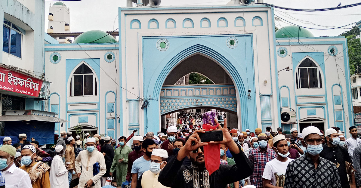 এর আগে সকাল সাড়ে ৭টা থেকে জায়নামাজ হাতে মুসল্লিরা ভিড় জমান দরগাহ মসজিদে। মসজিদের প্রবেশমুখে পুলিশি তল্লাশি বসানো হয়। এই সময় সবাইকে তল্লাশি করে ভেতরে প্রবেশ করতে দেওয়া হয়। মুখে মাস্ক ছাড়া কাউকে প্রবেশ করতে দেওয়া হয়নি