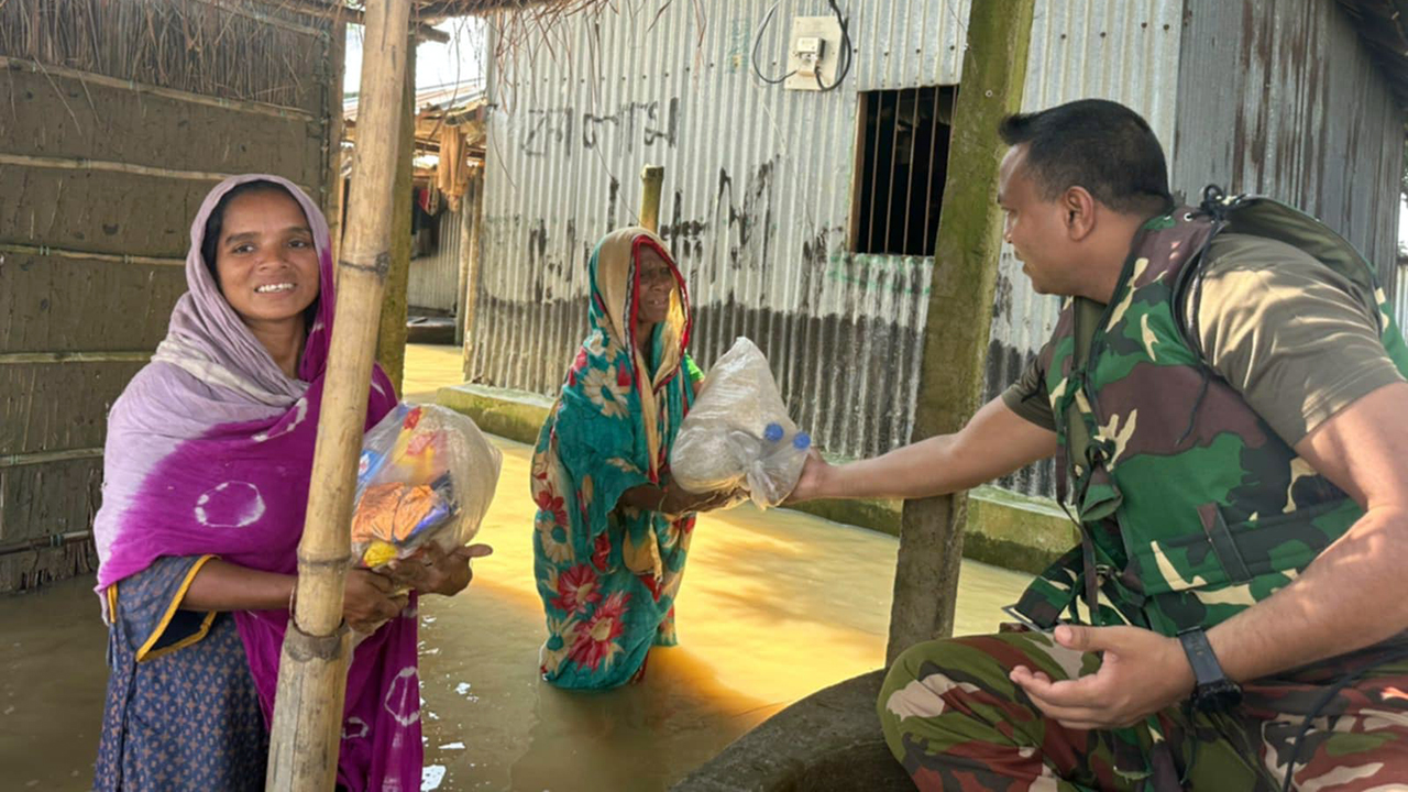 লেফটেন্যান্ট কর্নেল লেনিনের নেতৃত্বে সেনাবাহিনীর একটি দল ক্ষতিগ্রস্ত এলাকা পরিদর্শন শেষে এই ত্রাণ বিতরণ করে।