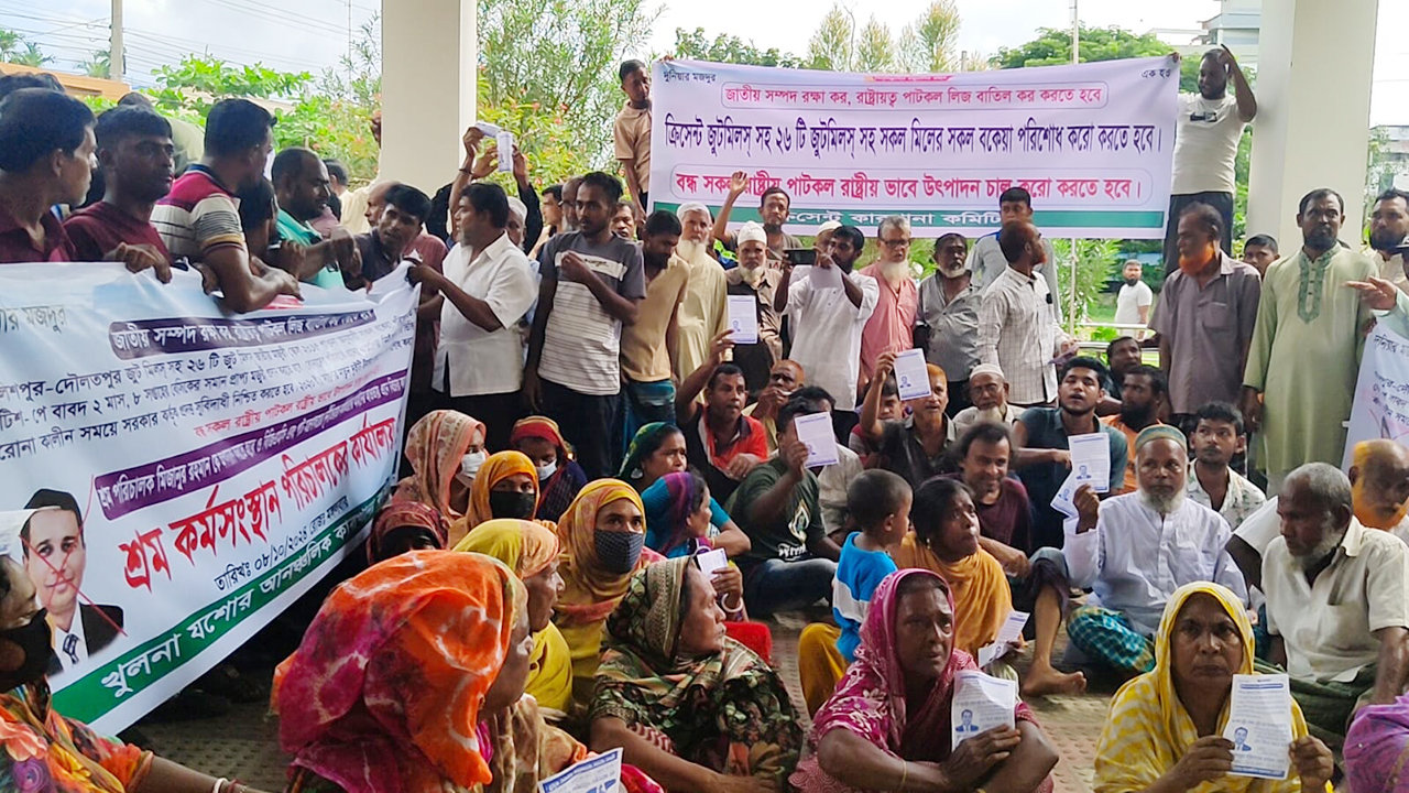 শ্রমিক নেতারা বলেন, ২০২০ সালের ২ জুলাই বিগত ফ্যাসিবাদী আওয়ামী লীগ সরকার প্রধান একযোগে ২৬টি রাষ্ট্রায়ত্ত পাটকল বন্ধ ঘোষণা করেন। তখন থেকেই আমরা পাটকল চালু, শ্রমিকদের সকল বকেয়া পাওনা প্রদান, পাটকল আধুনিকায়নের দাবিতে শ্রমিক আন্দোলন গড়ে তুলি। আন্দোলনের শুরুতেই রাষ্ট্রীয় বিভিন্ন বিশেষ সংস্থা, পুলিশ প্রশাসন দ্বারা আমাদের নানাভাবে ভয়ভীতি দেখিয়ে এসেছে। খুলনা বিভাগীয় শ্রম পরিচালক মো. মিজানুর রহমান তৎকালীন সরকার ও সাবেক শ্রম প্রতিমন্ত্রীর আশীর্বাদপুষ্ট হয়ে শ্রমিক স্বার্থের বিপক্ষে অবস্থান নিয়েছেন এবং এখনো শ্রমিক স্বার্থ পরিপন্থি ভূমিকা রেখে চলেছেন। রাষ্ট্রীয় মালিক আমাদের শ্রম শোষণ করেছেন, রক্ত চুষে নিয়েছেন।