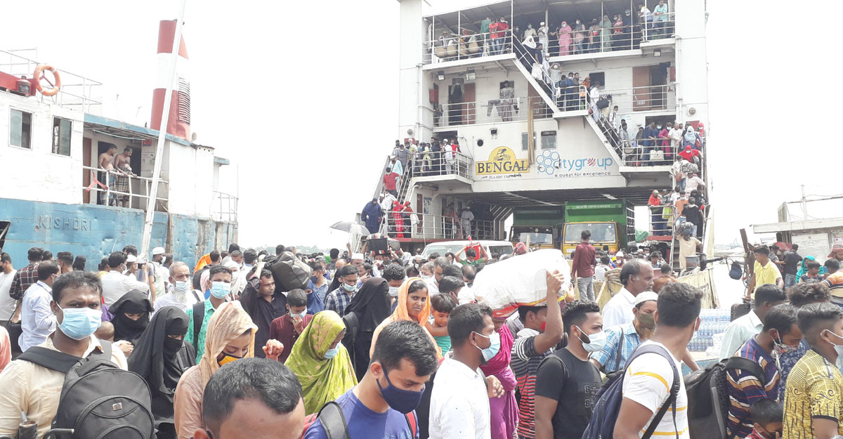 বাংলাবাজার ঘাটে উভয়মুখী যাত্রীর চাপ