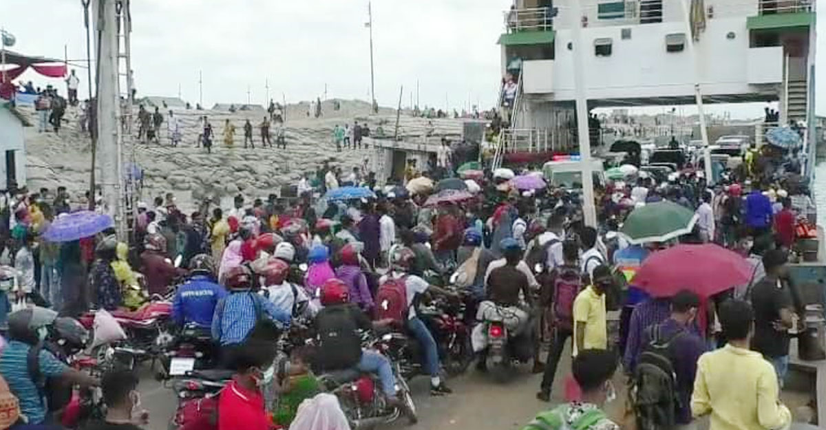 বাংলাবাজার ঘাটে যাত্রীদের ভিড়
