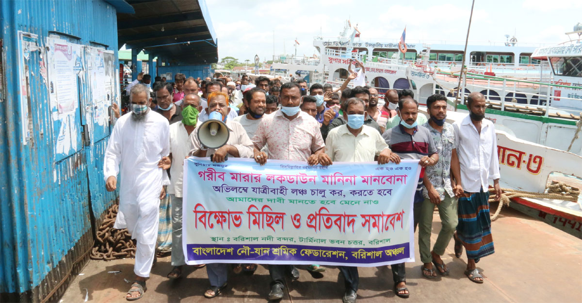 বিক্ষোভ-পূর্ববর্তী সমাবেশে বক্তারা বলেন, ঈদে শ্রমিকদের এক কেজি সেমাইও কিনে দেননি লঞ্চমালিকরা। লঞ্চ চলাচল না করায় অত্যন্ত মানবেতর জীবন যাপন করছেন শ্রমিকরা।