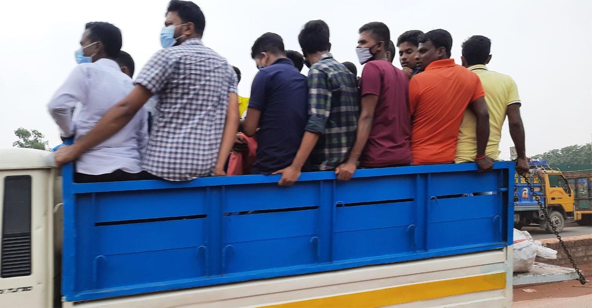 সরেজমিন দেখা যায়, একেকটি ট্রাকে যাচ্ছে ৫০ থেকে ৬০ জন করে যাত্রী। বাসের আসনের দুই গুণ যাত্রী তুলছে ট্রাকে। এতে একদিকে যেমন অমানবিক কষ্ট, তার ওপরে কোভিড-১৯-এর (করোনাভাইরাস) সংক্রমণের ঝুঁকিও বাড়ছে অনেক গুণ।