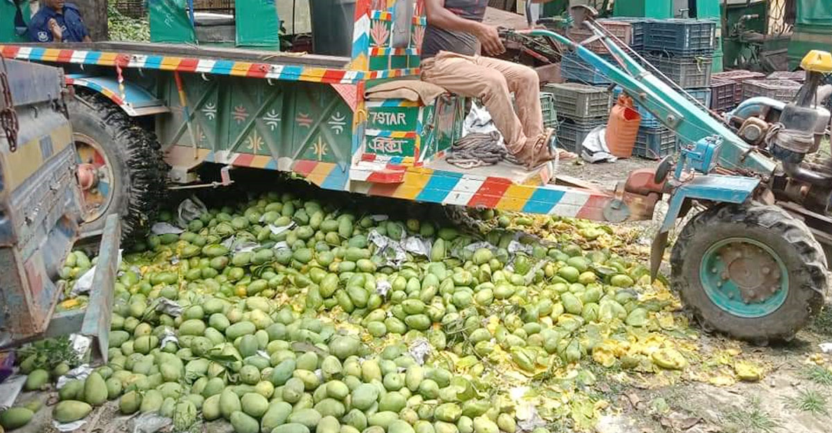 পাওয়ার টিলারের নিচে ফেলে নষ্ট করা হলো ২৮ মণ আম