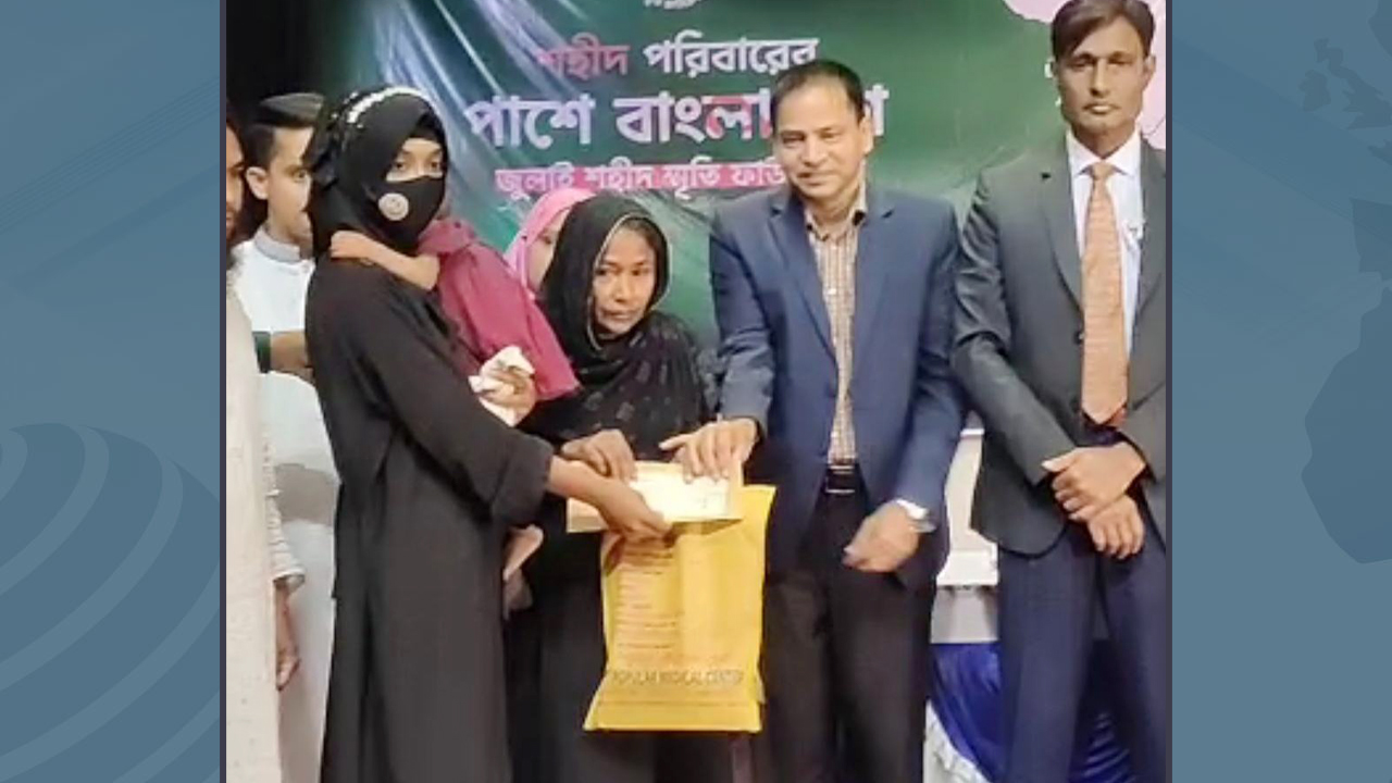 জুলাই শহীদ স্মৃতি ফাউন্ডেশনের উদ্যোগে ময়মনসিংহ বিভাগে বৈষম্যবিরোধী আন্দোলনে শহীদ ৫৫ পরিবারকে পাঁচ লাখ টাকা করে আর্থিক অনুদানের চেক বিতরণ করা হয়েছে।