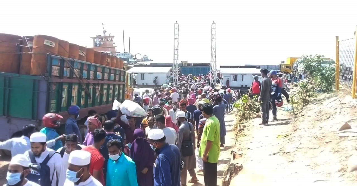 উভয়মুখী যাত্রীর চাপে পারাপারের অপেক্ষায় ৫০০ পরিবহন