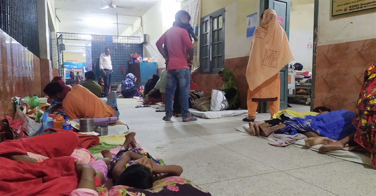 রোগী বেড়ে যাওয়ায় চিকিৎসা দিতে হিমশিম খাচ্ছে হাসপাতাল কর্তৃপক্ষ । কুড়িগ্রাম ২৫০ শয্যা জেনারেল হাসপাতালের চিত্র এটি