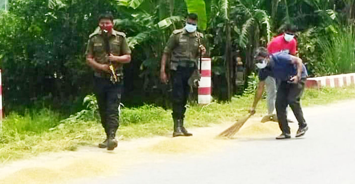 সড়কে শুকাতে দেওয়া ধান পরিষ্কার করলেন ইউএনও