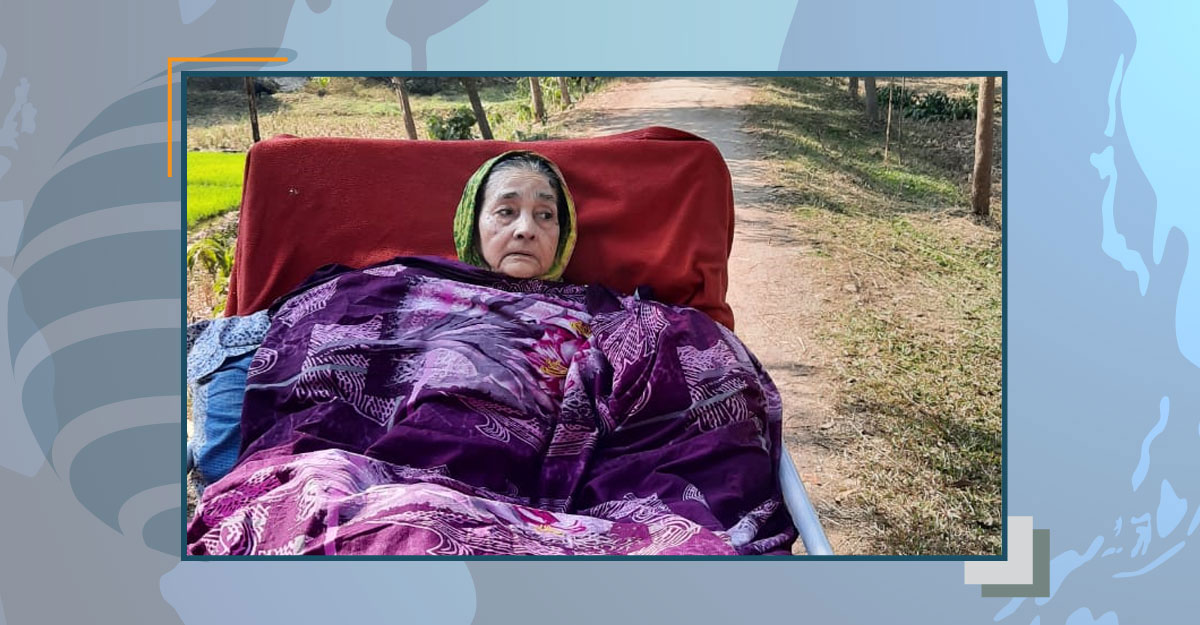 স্ট্রেচারে শুয়ে গ্রাম দেখছেন জোবেদা খাতুন