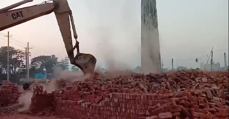 অবৈধভাবে ইটভাটা গুঁড়িয়ে দিচ্ছেন ভ্রাম্যমাণ আদালত