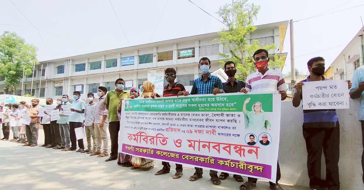 বকেয়া বেতনের দাবিতে নওগাঁ সরকারি কলেজের বেসরকারি কর্মচারীদের মানববন্ধন