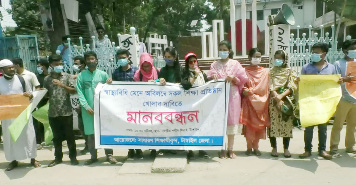 টাঙ্গাইলে স্বাস্থ্যবিধি মেনে শিক্ষাপ্রতিষ্ঠান খোলার দাবি