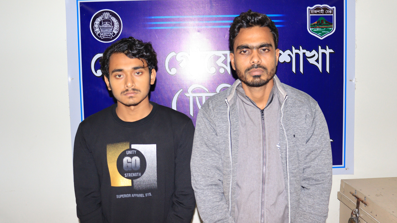 গ্রেপ্তাররা হলেন- চাঁপাইনবাবগঞ্জের নাচোল উপজেলার বাহির মল্লিকপুর এলাকার মো. তোফাজ্জল হকের ছেলে মো. শাহিন রেজা (২২) এবং আতাউর রহমানের ছেলে মো. সামাদ আলী (৩০)।