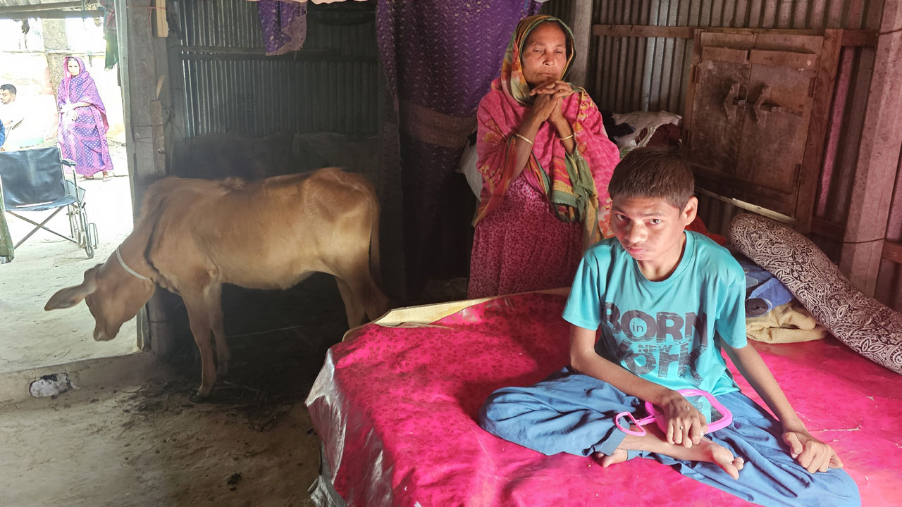 প্রতিবন্ধী ছেলেকে নিয়ে বিধবা রহিমার ঠাঁই হয়েছে গোয়ালঘরে