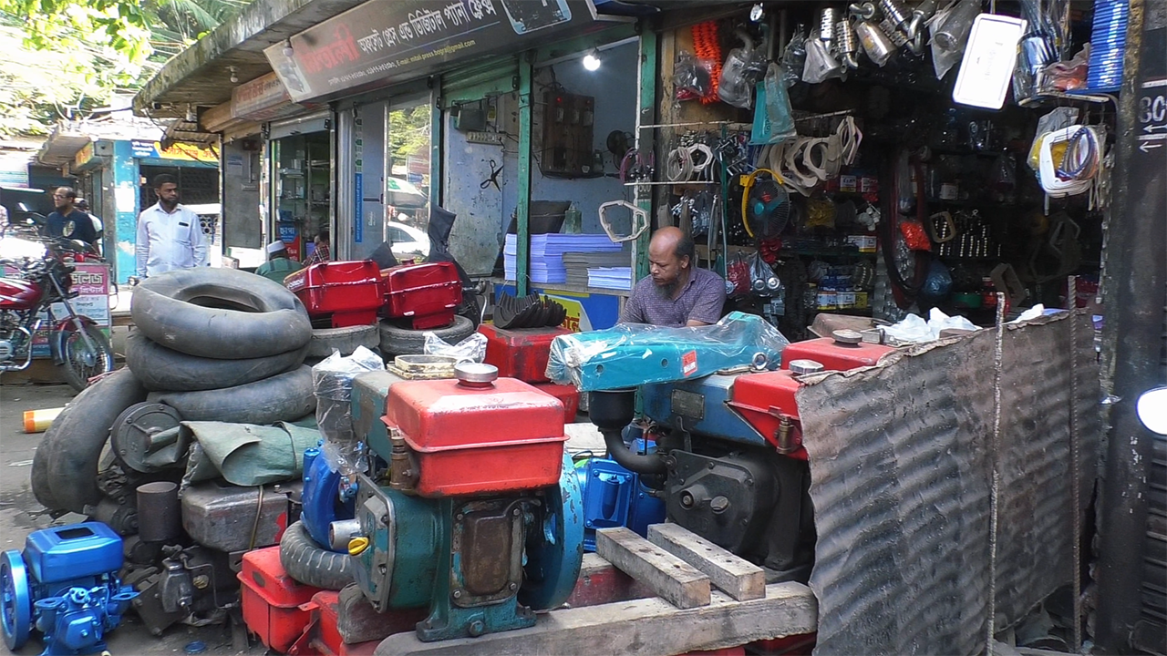 বগুড়ার শাপলা মার্কেটে পুরোনো যন্ত্রপাতির জমজমাট কারবার