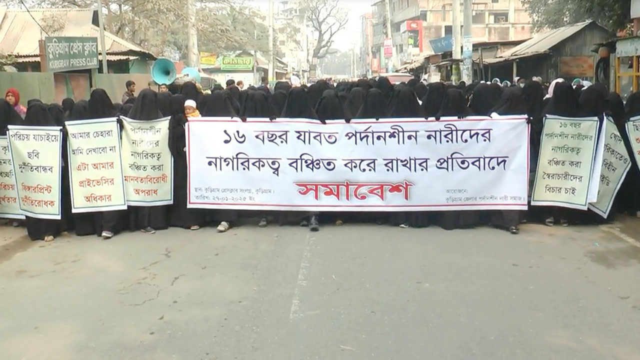 কুড়িগ্রামে জাতীয় পরিচয়পত্রে চেহারা আর মুখের ছবি প্রদর্শন করে ছবি না তুলে শুধু ফিঙ্গার প্রিন্ট (হাতের আঙুলের ছাপ) নিয়ে পরিচয়পত্র করার দাবি তুলেছেন পর্দানশিন নারী সমাজ নামে একটি সংগঠন।