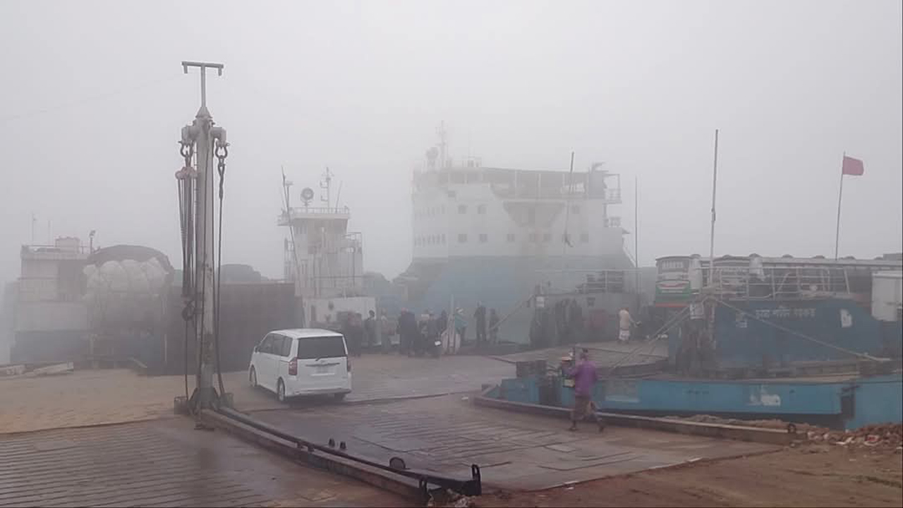 ঘন কুয়াশায় দৌলতদিয়া-পাটুরিয়া নৌরুটে ফেরি চলাচল বন্ধ