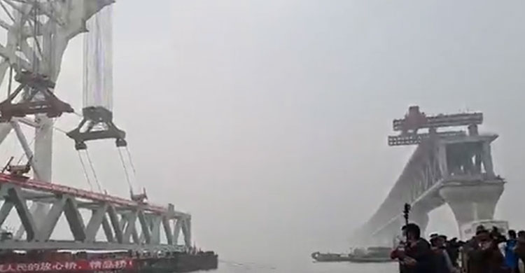 পদ্মা সেতুতে সর্বশেষ স্প্যান বসানোর কাজ চলছে