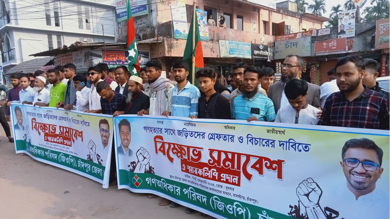 গতকাল (বুধবার) বিকেলে চাঁদপুর মাইক্রো স্ট্যান্ডে জুলাই গণঅভ্যুত্থানে গণহত্যার সাথে জড়িতদের বিচার ও গ্রেপ্তারের দাবিতে বিক্ষোভ সমাবেশে তিনি এসব কথা বলেন।