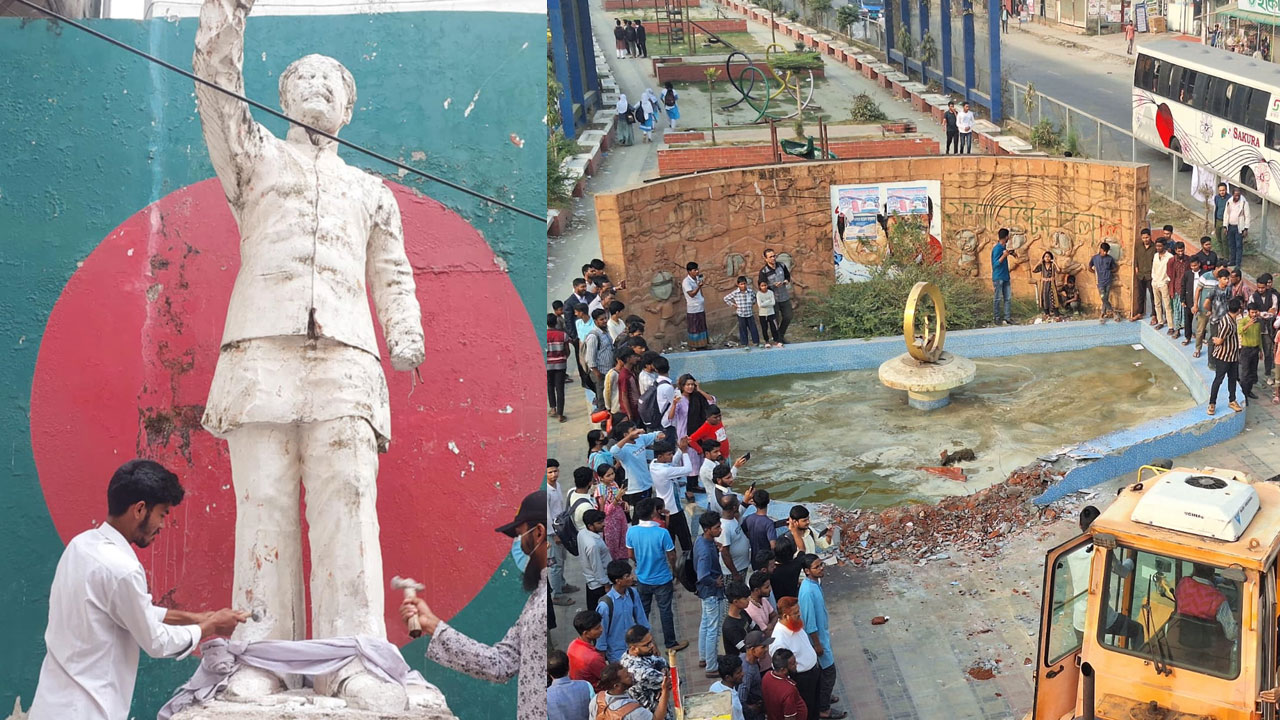 বরিশালে শেখ মুজিবের ভাস্কর্য ও পার্ক ভাঙল জনতা
