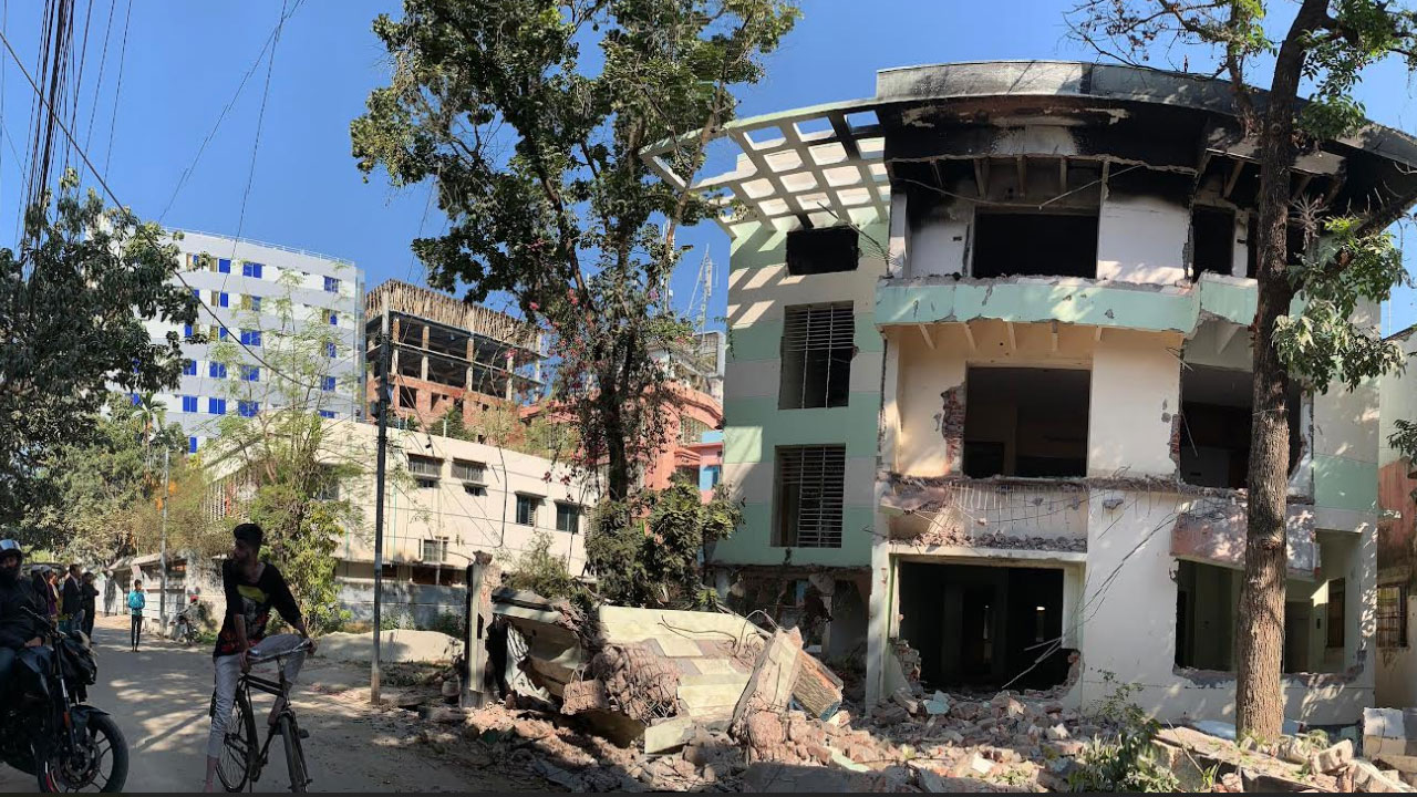 শেখ হাসিনা সরকারের পতনের দিনই এ বাড়িতে হামলা হয়। বাড়ির সবকিছুই লুট হয়ে যায় সেদিন। পরের দিনও বাড়িটির দরজা-জানালাও খুলে নিয়ে যেতে দেখা যায়। এরপর থেকে ভূতের বাড়ির মতো দালানটি দাঁড়িয়ে ছিল। সেই দালানটিও এবার গুঁড়িয়ে দেওয়া হয়েছে।