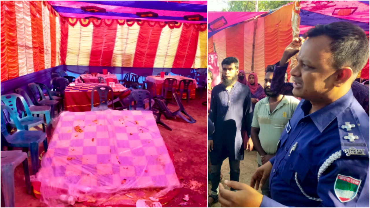 রাফির বাবা রাশিদুল ইসলাম বলেন, মাংসের ঝোল নিয়ে প্যান্ডেলে নিজেরা নিজেরা মারামারি ও ভাঙচুর করেছেন। অনুষ্ঠানের আনন্দ এখন বিষাদে পরিণত হয়েছে।