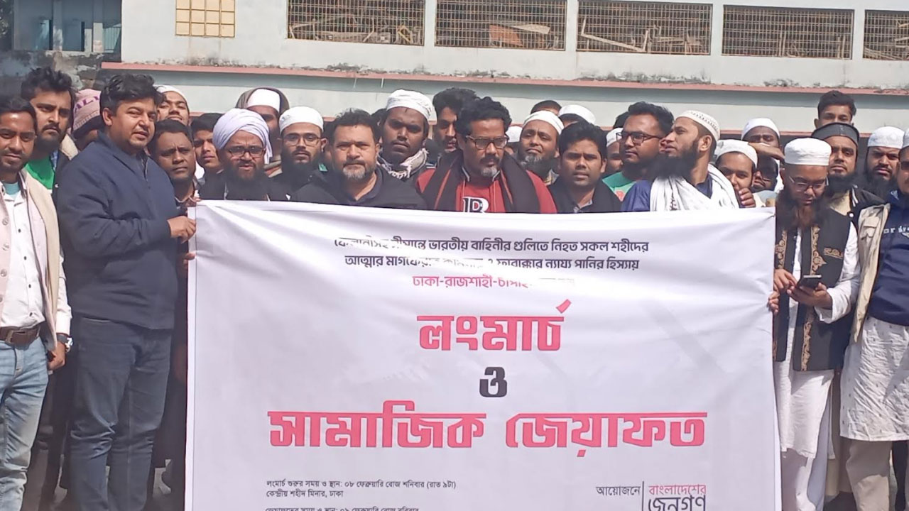 ফেলানীসহ সীমান্তে ভারতীয় বাহিনীর গুলিতে নিহত শহীদের আত্মার মাগফিরাত কামনায় ও ফারাক্কার নায্য পানির হিস্যার দাবিতে লংমার্চ ও সামাজিক জেয়াফত অনুষ্ঠিত হচ্ছে চাঁপাইনবাবগঞ্জে।
