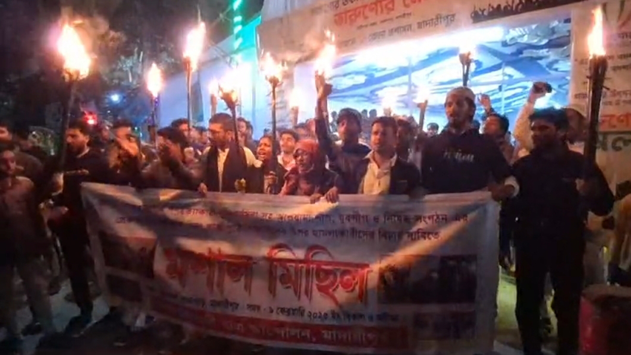 জুলাই গণঅভ্যুত্থানে গণহত্যা চালানোয় অভিযুক্ত স্বৈরাচার সাবেক প্রধানমন্ত্রী শেখ হাসিনাসহ আওয়ামী লীগ, যুবলীগ ও নিষিদ্ধ সংগঠন ছাত্রলীগের সদস্যদের গ্রেপ্তার এবং গাজীপুরে শিক্ষার্থীদের ওপর হামলাকারীদের বিচার দাবিতে মশাল মিছিল করেছে মাদারীপুর বৈষম্যবিরোধী ছাত্র আন্দোলন ও জাতীয় নাগরিক কমিটির নেতাকর্মীরা। রোববার (৯ ফেব্রুয়ারি) রাতে জেলা শহরের প্রধান সড়কে এ মিছিল হয়। এরপর অনুষ্ঠিত হয় সভা সমাবেশ।
