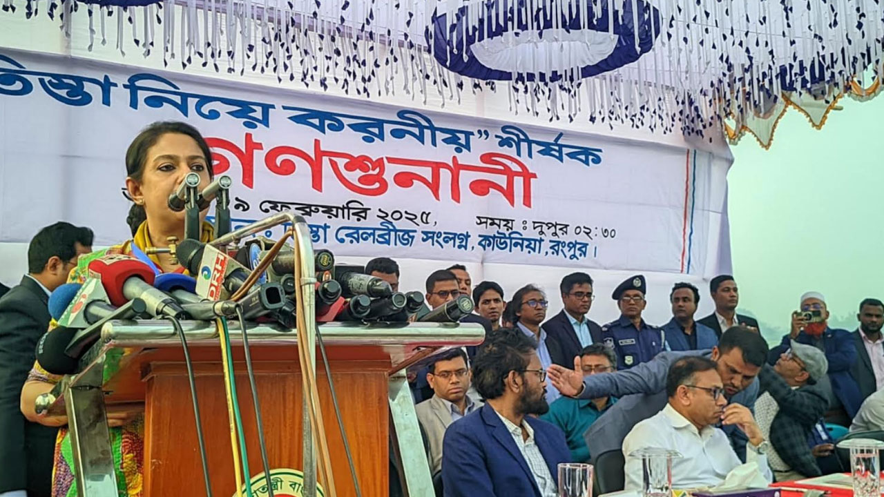 রোববার (৯ ফেব্রুয়ারি) বিকেলে রংপুরের কাউনিয়া উপজেলায় তিস্তা রেলসেতু সংলগ্ন এলাকায় ‘তিস্তা নিয়ে করণীয় শীর্ষক’ গণশুনানি অনুষ্ঠানে প্রধান অতিথির বক্তব্যে পানি সম্পদ উপদেষ্টা এসব কথা বলেন।