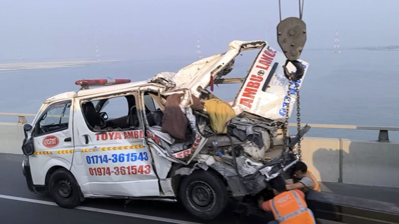 পদ্মা সেতুতে বাসের ধাক্কায় দুমড়েমুচড়ে গেলো অ্যাম্বুলেন্স, আহত ৫