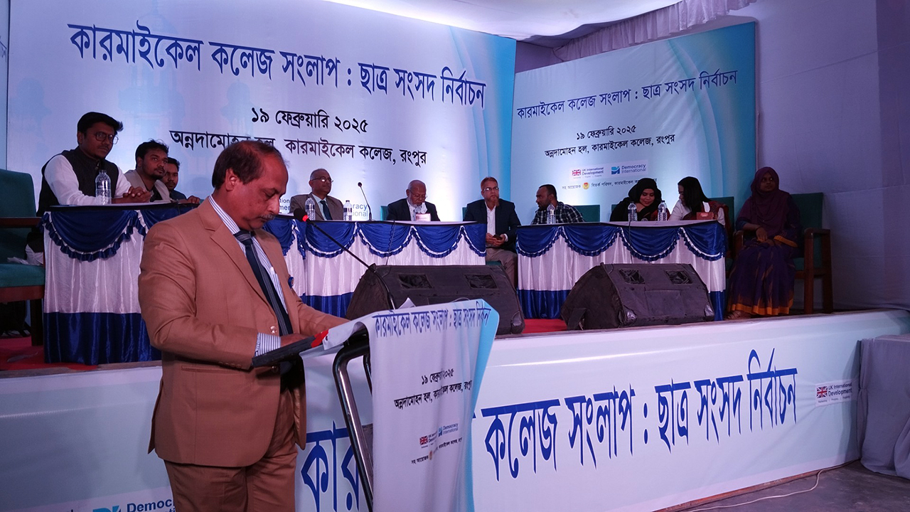 বুধবার (১৯ ফেব্রুয়ারি) সকাল সাড়ে ১০টায় কলেজের অন্নদামোহন হলরুমে ‘কারমাইকেল কলেজ সংলাপ: ছাত্র সংসদ নির্বাচন’ শীর্ষক এক সংলাপে তারা এসব মতামত জানান। এ সময় উপস্থিত ছিলেন কারমাইকেল কলেজের অধ্যক্ষ অধ্যাপক মোস্তাফিজুর রহমান।