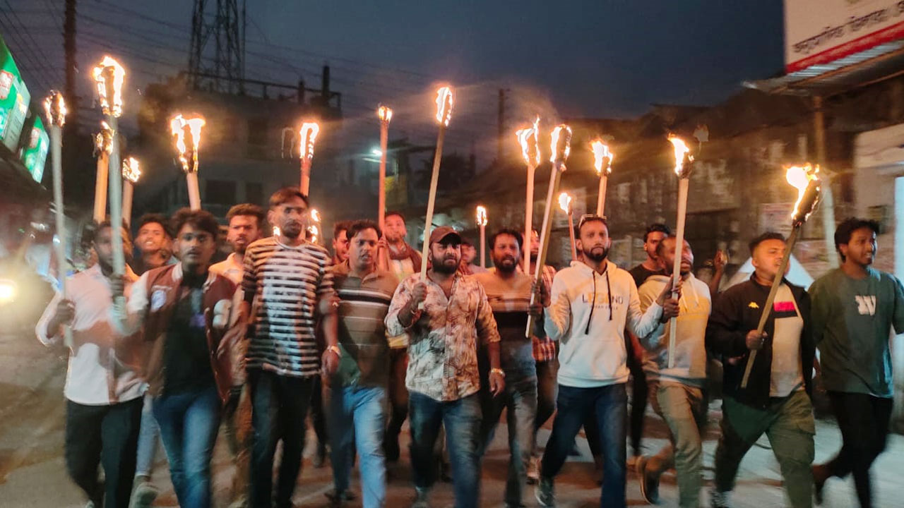 কুয়েটে হামলার প্রতিবাদে রাজবাড়ীতে ছাত্রদলের মশাল মিছিল