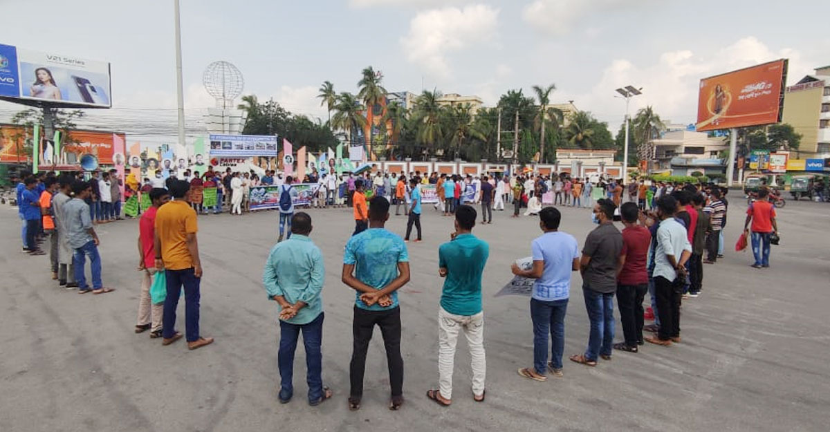 খুলনাঞ্চলের উপকূলে টেকসই বাঁধ নির্মাণের দাবিতে মানববন্ধন