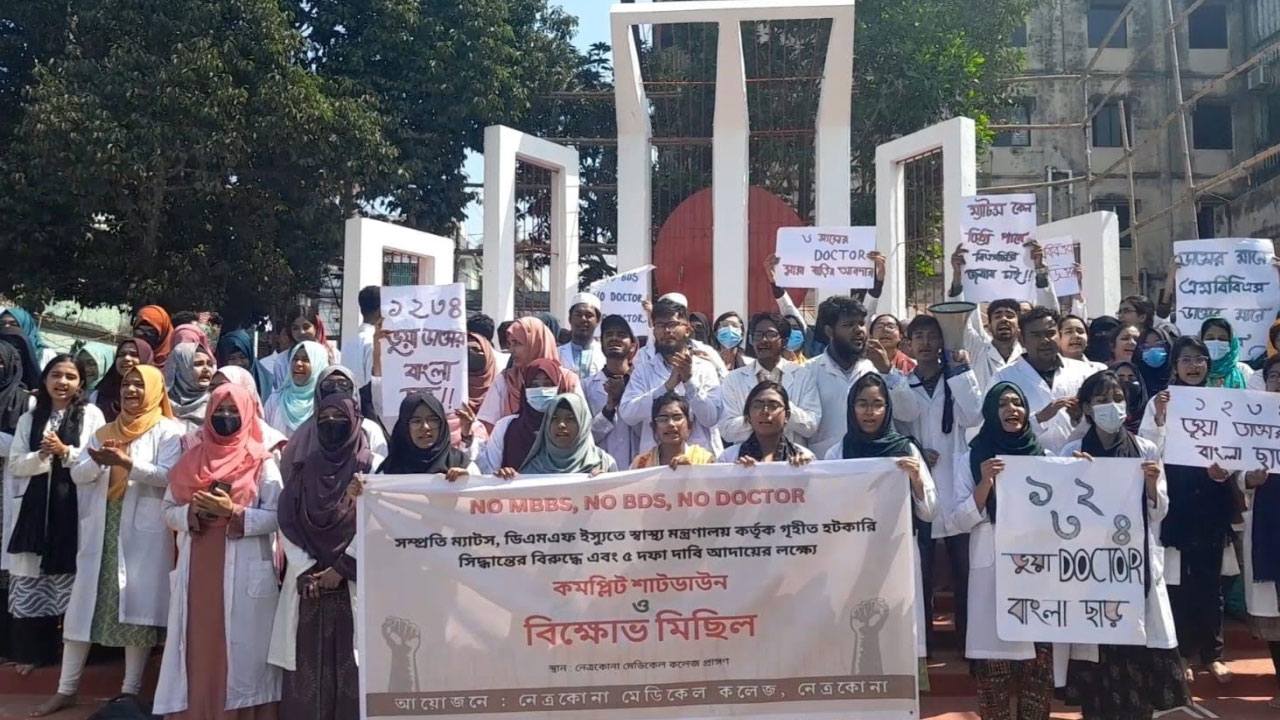 কমপ্লিট শাটডাউনে নেত্রকোণা মেডিকেল কলেজের শিক্ষার্থীরা