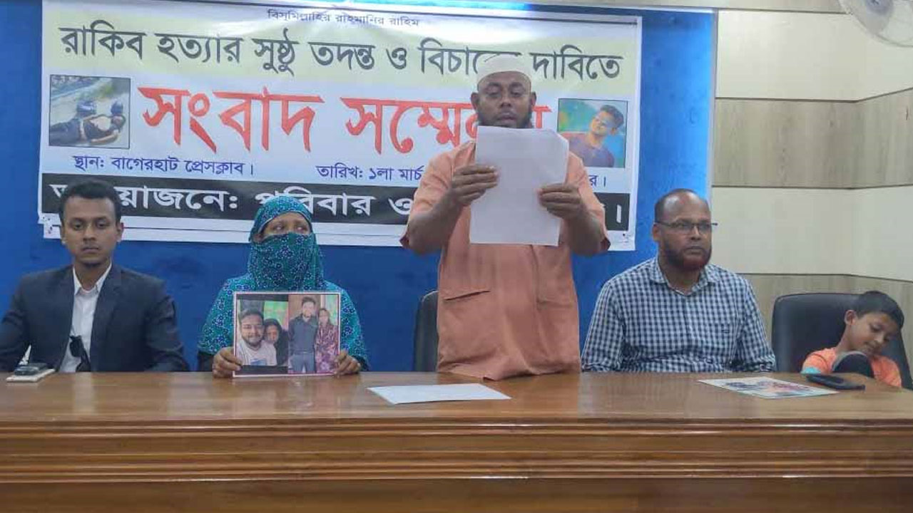 সংবাদ সম্মেলনের সময় রাকিবের মা নাজমিন বেগম, ছোট ভাই রিফাত হাওলাদার, ভাগ্নে ফয়সাল মুন্সি, স্থানীয় মনির হোসেন উপস্থিত ছিলেন।
