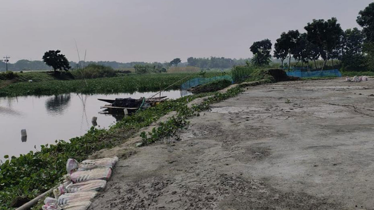 ছয় কোটি টাকার প্রকল্প, নদের বালু দিয়েই বাঁধ তৈরি