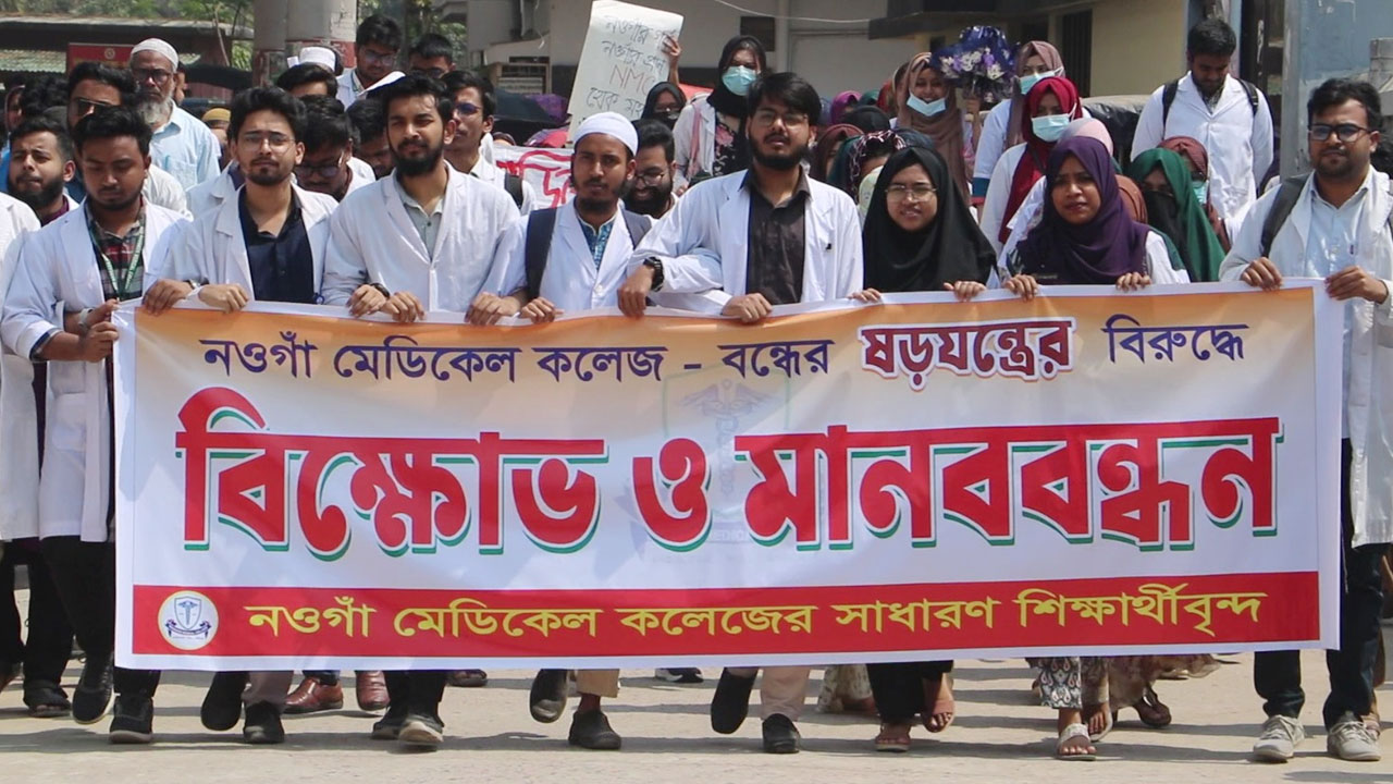 নওগাঁ মেডিকেল কলেজে শিক্ষার্থীদের বিক্ষোভ