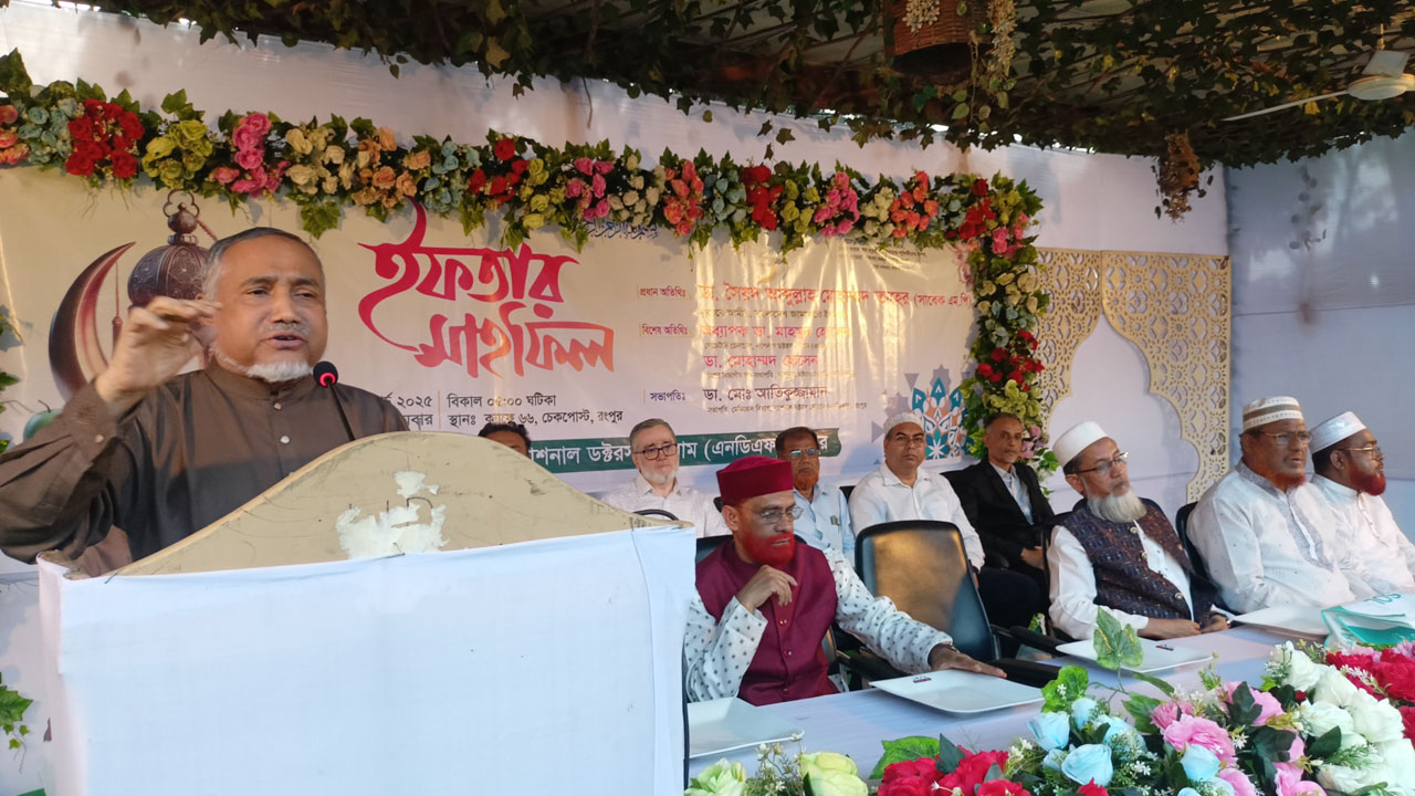 সোমবার (১৭ মার্চ) বিকেলে রংপুরের চেকপোস্ট ক্যাফে ৬৬-তে ন্যাশনাল ডক্টরস ফোরাম (এনডিএফ) রংপুরের আয়োজিত ইফতার মাহফিলে প্রধান অতিথির বক্তব্যে তিনি এসব কথা বলেন।