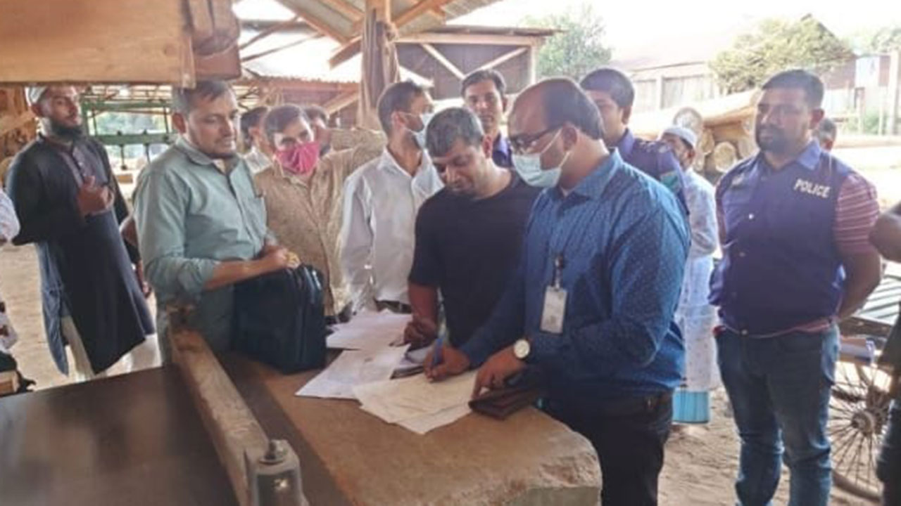 এ সময় পরিবেশের ছাড়পত্র না থাকায় বালিগাঁও বাজার সংলগ্ন সানফ্লাওয়ার কোল্ড স্টোরেজের স্বত্বাধিকারী মো. মনিরুজ্জামানকে ৩ লাখ টাকা জরিমানা করেন। এছাড়াও একই বাজার এলাকায় অবস্থিত মামুন “স”মিল মালিক নান্নু মিয়া, বাংলাদেশ টিম্বার্স অ্যান্ড “স” মিল মালিক আবু জাফর লিটন, মেসার্স আল্লাহর দান টিম্বার অ্যান্ড “স” মিল মালিক মো. কামরুজ্জামান, মেসার্স আশরাফ আলী টিম্বার্স অ্যান্ড “স” মিল মালিক আশরাফ আলী, সিদ্দিকুর রহমান টিম্বার অ্যান্ড “স” মিল মালিক সিদ্দিকুর রহমান,, রাজু টিম্বার্স অ্যান্ড “স” মিল মালিক বারেক হাওলাদার তাদের প্রত্যেককে ১ লাখ টাকা করে জরিমানা করা হয়।
