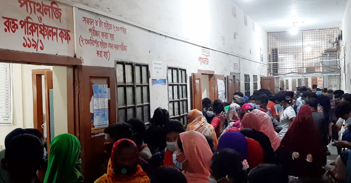 প্যাথলজি বিভাগের সামনে রোগীদের ভিড়