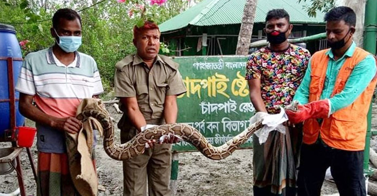 বাগেরহাট পূর্ব সুন্দরবনের চাঁদপাই রেঞ্জের এসিএফ এনামুল হক বলেন, সকাল ৯টার দিকে রাসেল হাওলাদার ও স্থানীয় লোকজন অজগরটি দেখতে পেয়ে বন বিভাগে খবর দেয়। সুন্দরবনের বন্যপ্রাণী সংরক্ষণের কাজে নিয়োজিত ওয়াইল্ড টিম, বন বিভাগ ও ভিটিআরটির সদস্যরা সেখানে গিয়ে সাপটি উদ্ধার করে। ৯ ফুট লম্বা অজগরটির ওজন প্রায় ১২ কেজি। ঘূর্ণিঝড় ইয়াসের প্রভাবে সৃষ্ট জোয়ারে অজগরটি সুন্দরবন থেকে ভেসে লোকালয়ে চলে এসেছে বলে ধারণা করা হচ্ছে।