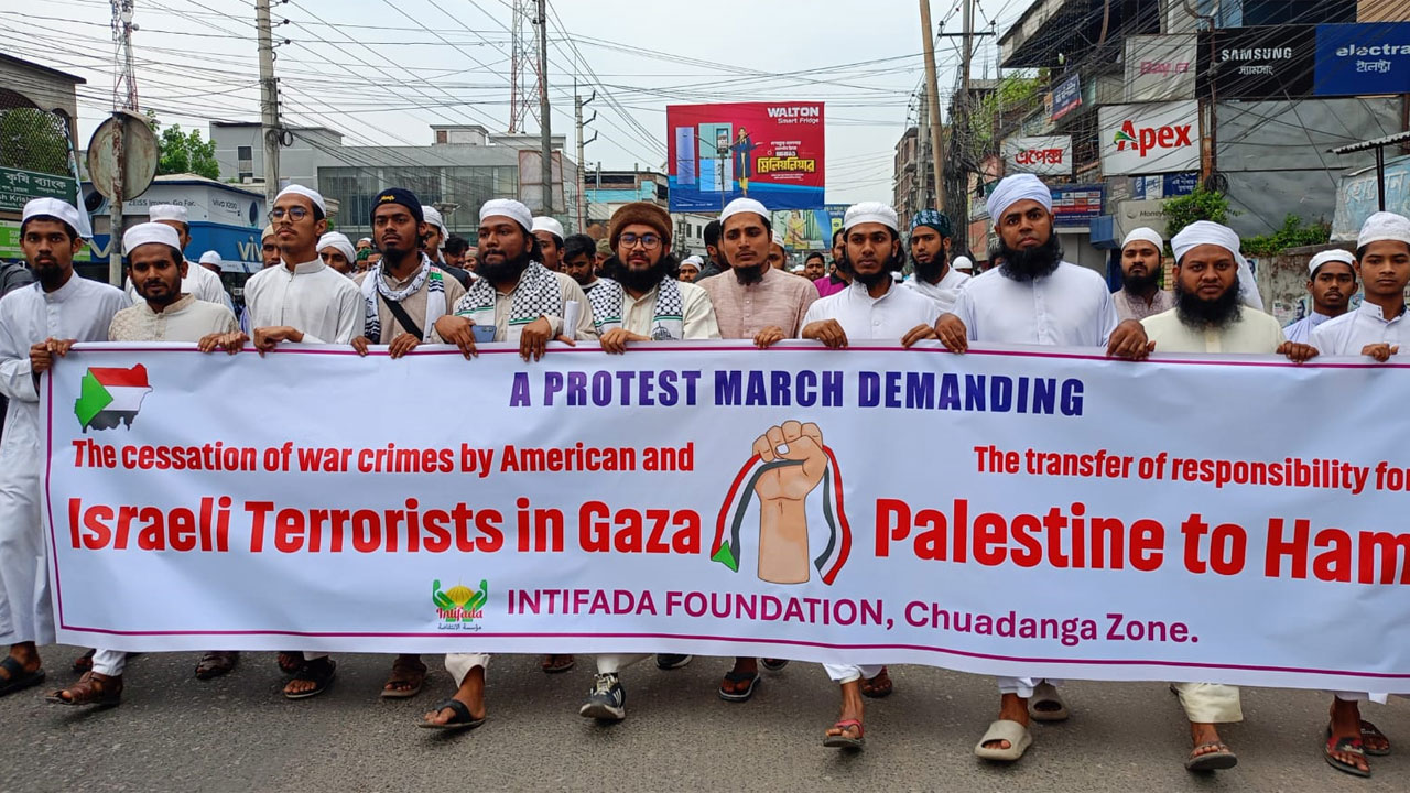 গাজায় ইসরায়েলের গণহত্যার প্রতিবাদ ও ফিলিস্তিনের দায়িত্ব হামাসের হাতে অর্পণ করার দাবিতে বিক্ষোভ মিছিল করেছে ইন্তিফাদা ফাউন্ডেশন চুয়াডাঙ্গা জোন।