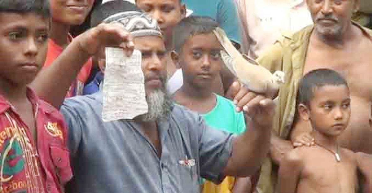 কাগজের মধ্যে কলমে লেখা ওই চিঠির ওপরের অংশে আরবি লেখা এবং নিচের অংশে নুসরাত জাহান, পারুল খাতুন, রিয়াজুল হোসেন ও আবদুল আজিজ লেখা রয়েছে। এর ডান পাশে ‘মহব্বতের বার্তা’ লেখা রয়েছে। আরবি লেখাটি কেউ পড়তে পারছেন না বলে জানান তিনি।