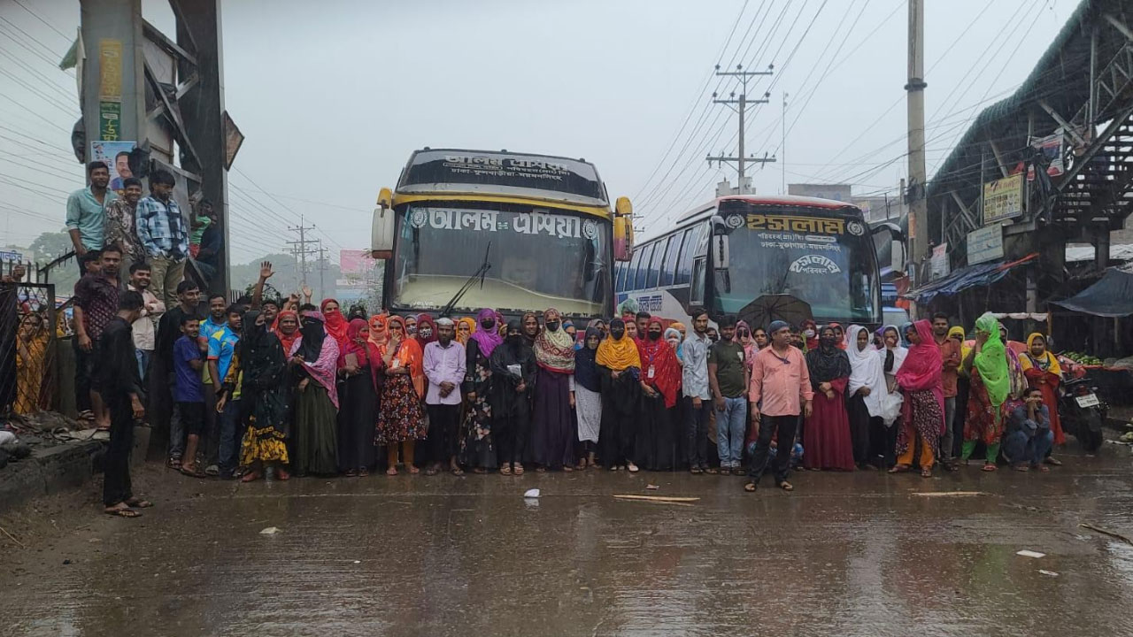 গাজীপুরে মহাসড়ক অবরোধ করে শ্রমিকদের বিক্ষোভ, যান চলাচল বন্ধ