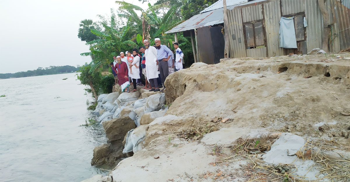 ফসলি জমি নদীগর্ভে বিলীন হয়েছে বহু আগে। এখন চোখের সামনে একমাত্র সম্বল ঘর-জমি নদীগর্ভে বিলীন হতে দেখেও নিরুপায়-নির্বাক গ্রামের সহজ-সরল মানুষগুলো। শেষ চেষ্টা করেও রক্ষা করতে পারছে না শেষ আশ্রয়স্থল ভিটেমাটি।