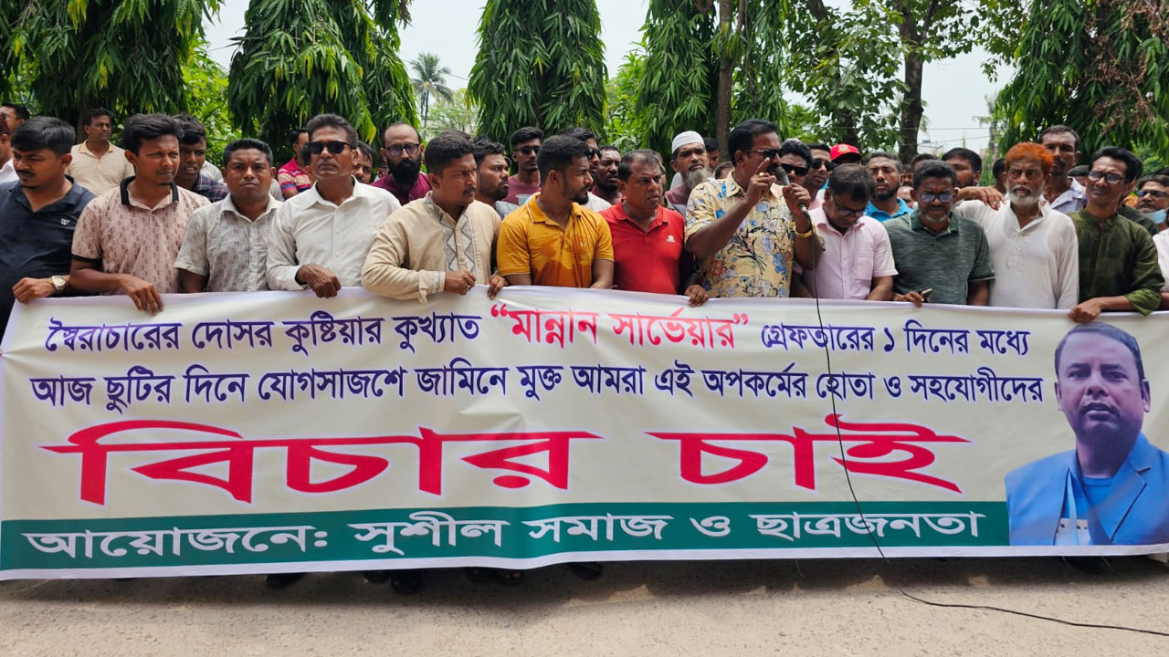 কুষ্টিয়া আদালত পুলিশের পুলিশের জহুরুল ইসলাম বলেন, বৈষম্যবিরোধী আন্দোলনে আন্দোলকারীদের হত্যা চেষ্টা মামলার আসামি আব্দুল মান্নানকে জামিন দেওয়ার প্রতিবাদে আদালত চত্বরে মানববন্ধন করেছে ছাত্র-জনতা। বৈষম্যবিরোধী ছাত্র আন্দোলনের সময় হামলায় আহত ইয়ামিন আলী নামে এক যুবকের দায়েরকৃত হত্যাচেষ্টা মামলার এজাহারভুক্ত আসামি মান্নান।