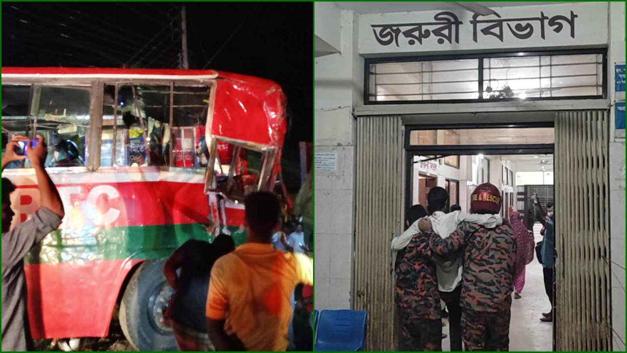 ঠাকুরগাঁওয়ে বিআরটিসি বাস ও ট্রাকের মুখোমুখি সংঘর্ষ, আহত ১৫