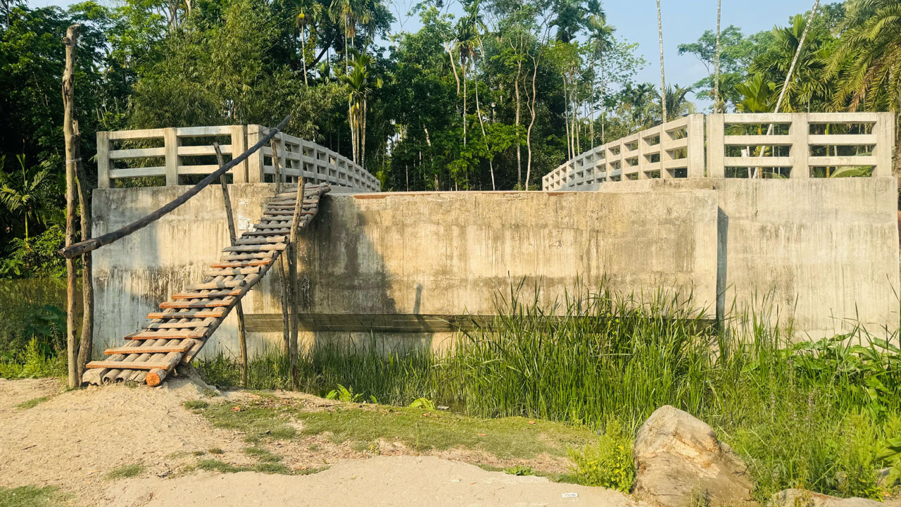 মই বেয়ে উঠতে হয় দেড় কোটি টাকার সেতুতে