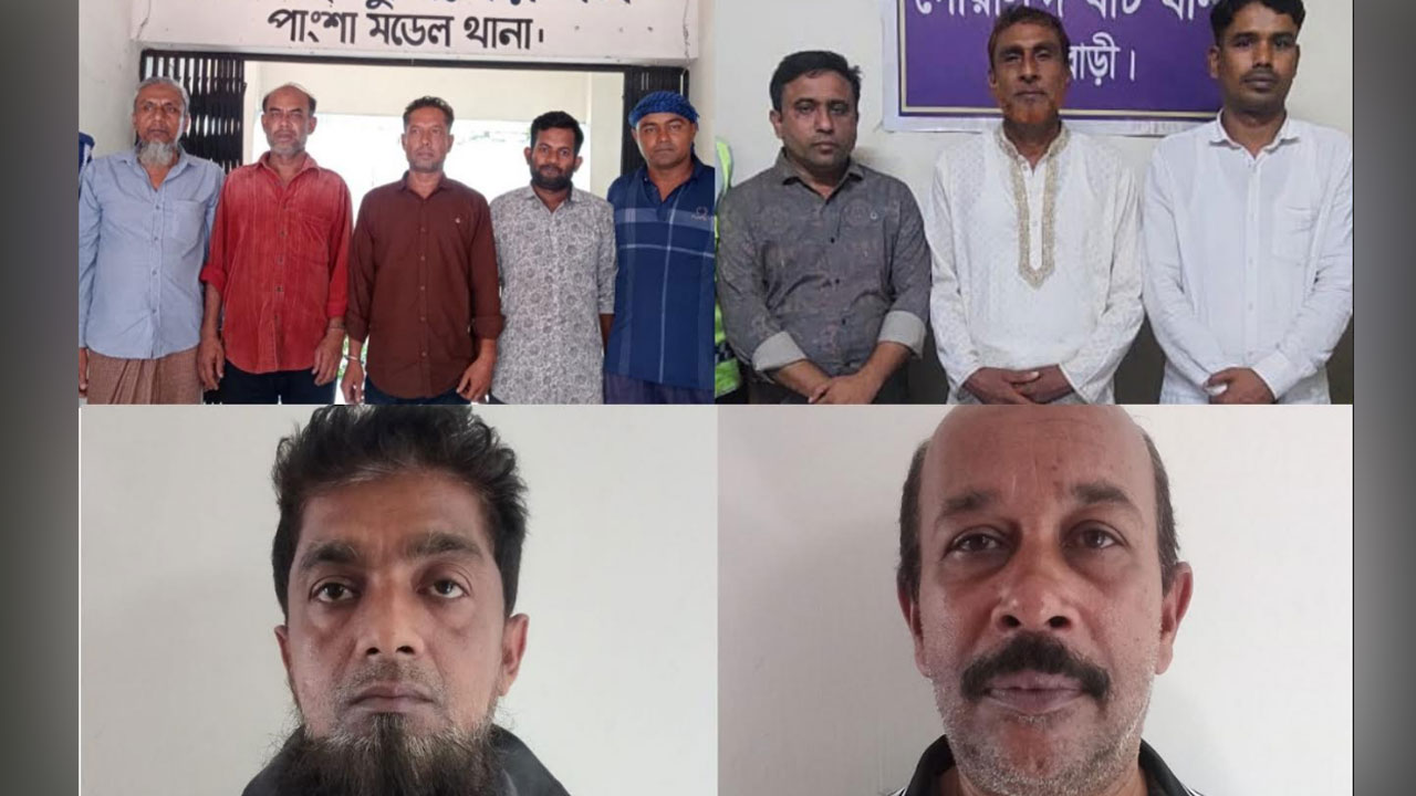 গ্রেপ্তারকৃতরা হলেন, সদর উপজেলার বরাট ইউনিয়নের ২নং ওয়ার্ড ভবদিয়া গ্রামের মোহাম্মদ আলী মোল্লার ছেলে জেলা মুক্তিযোদ্ধা প্রজন্মলীগের সভাপতি মো. ফরিদ আলী মোল্লা (৪২), সদর উপজেলার খোলাবাড়িয়া গ্রামের মৃত সুবল চন্দ্র সাহার ছেলে পাচুরিয়া ইউনিয়ন ৮নং ওয়ার্ডের আওয়ামী লীগ সেক্রেটারি বিশ্বনাথ সাহা (৫৮), গোয়ালন্দ উপজেলার দৌলতদিয়া ইউনিয়ন ৪নং ওয়ার্ড নুরু মন্ডলের পাড়ার আব্দুস ছামাদ শেখের ছেলে ও উপজেলা আওয়ামী লীগের সহ-সাধারণ সম্পাদক মো. জিয়াউর রহমান (৪৫), উজানচর ইউনিয়ন ৫নং ওয়ার্ড গফুর মাতুব্বর পাড়ার মৃত দানেশ শেখের ছেলে ও ইউনিয়ন কৃষক লীগের সাধারণ সম্পাদক মো. সোনাই মিয়া (৫০), উজানচর ইউনিয়ন ৭নং ওয়ার্ড ছাহের মণ্ডল পাড়ার আদু শেখের ছেলে ও ইউনিয়ন যুবলীগের সক্রিয় সদস্য এবং ৭নং ওয়ার্ড মেম্বার মো. সমসের আলী (৩৬), পাংশা উপজেলার পুপুলবাড়িয়া গ্রামের মো. বদর উদ্দিন শেখের ছেলে ও মৌরাট ইউনিয়ন ছাত্রলীগের সভাপতি মো. মিন্টু শেখ (২৮), পৌরসভার রঘুনাথপুর গ্রামের মৃত ইমারত সরদারের ছেলে ও পৌরসভার ৮নং ওয়ার্ড যুবলীগ সদস্য গোলাম মোরতোজা নাছের ওরফে লিটন (৪৫), মাগুরাডাঙ্গী গ্রামের মহসিন মন্ডলের ছেলে ও পাংশা পৌর যুবলীগের সাংগঠনিক সম্পাদক মো. হাবিবুর রহমান (৪০), নারায়ণপুর গ্রামের মৃত আ. জব্বারের ছেলে মোস্তাফিজুর রহমান (৬০) ও বাবুপাড়া গ্রামের মৃত আব্দুল হাই হাজারীর ছেলে ইউনিয়ন যুবলীগের সদস্য মো. মনিরুল ইসলাম (৪০)।